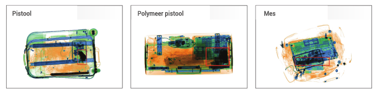 The AI software is able to identify dangerous objects anywhere in a scanned image, even if they are rotated, partially obscured, or vary in size. The software isolates threats, displayed in a red box and automatically stops the conveyor to immediately alert the operator of critical threats.